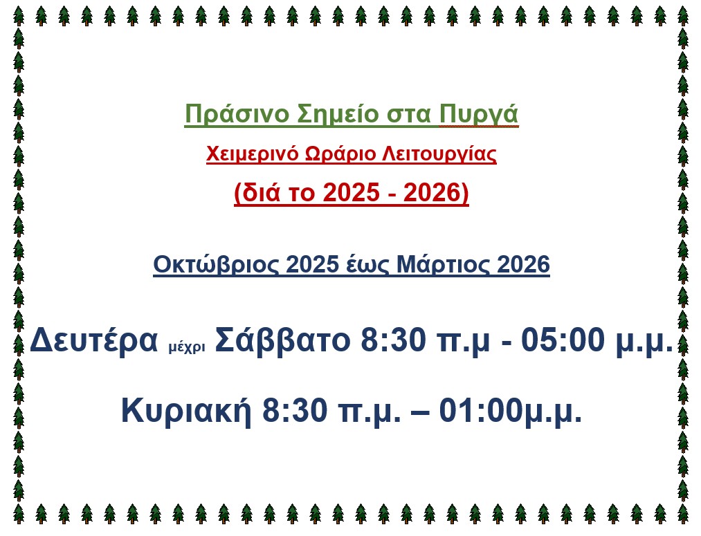 Πράσινο Σημείο στα Πυργά – Χειμερινό Ωράριο Λειτουργίας 2025-2026